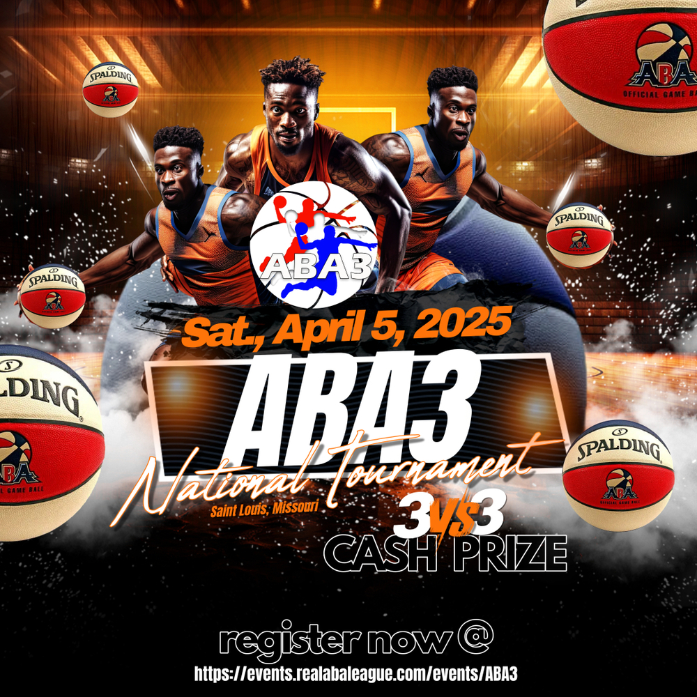 Gather your squad and get ready to bring your A-game to the ABA3 National Tournament in St. Louis! Teams from across the country will converge at the St. Louis Community College-Forest Park to compete for glory and a $1000 cash prize. Don't miss this opportunity to be a part of the historic ABA Championship Weekend and showcase your skills on the court. Limited spots are available, so register now to secure your team's spot in this thrilling event!