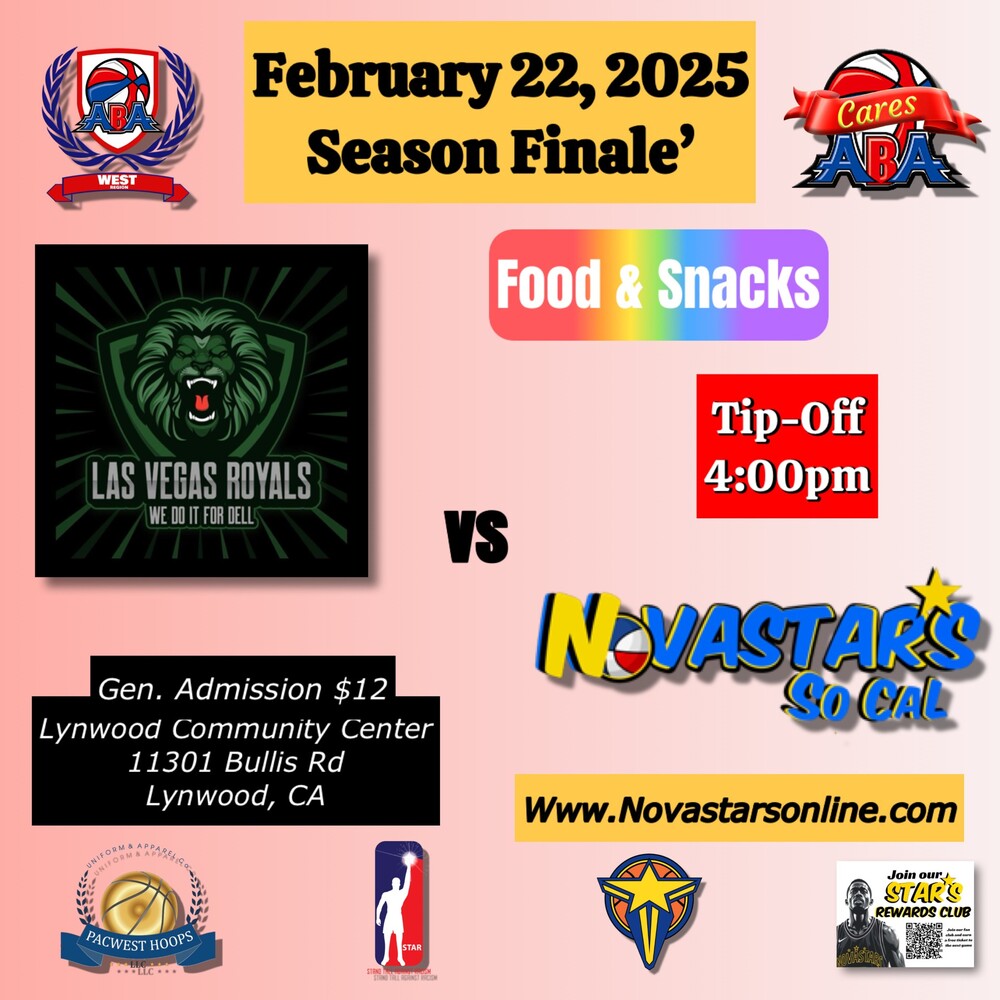 Get ready for an unforgettable night as Novastars SC host the Las Vegas Royals for the first time in Southern California since the dark days of Covid-19. The tension is palpable as these two teams face off once again, with history between them that includes a heartbreaking loss for Novastars in the playoffs. Every match between Novastars SC and Las Vegas is a nail-biter, with the outcome often being decided in the final minutes. Join us in the stands and cheer on Novastars as they strive for supremacy in the black division of the Pacific region of the ABA. Be a part of the excitement and witness basketball at its finest!
